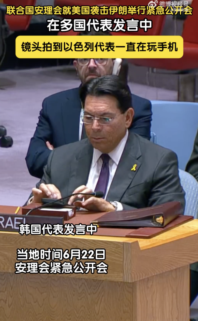 美袭伊紧急会议以色列代表一直玩手机。