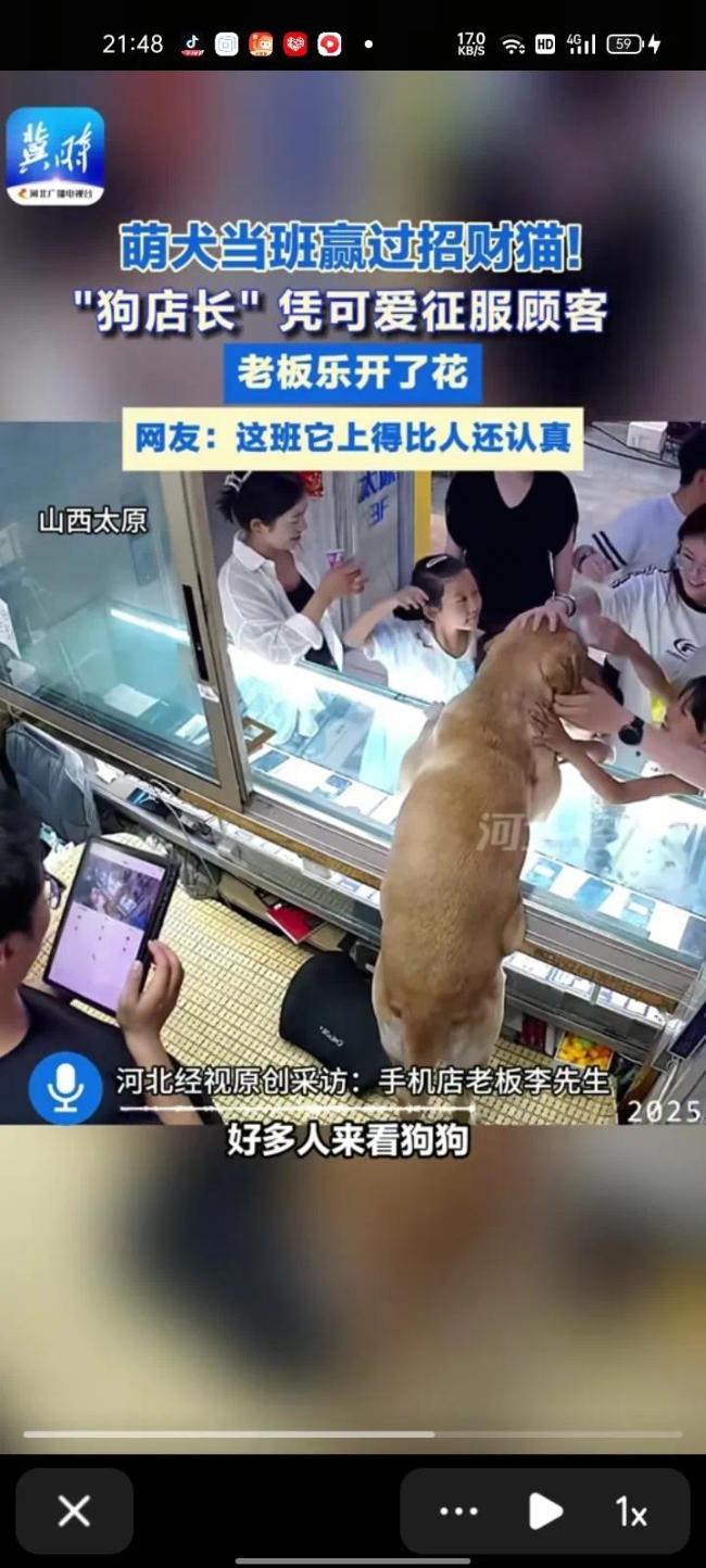 狗狗店长凭借可爱征服顾客萌宠魅力无法挡。近日,山西太原。手机店里萌犬当上“狗店长”,凭着可爱征服顾客,店老板乐开了花。网友称,这班它上的比人还认真。店老板李先生称,自己开了手机维修店,就带狗每天来陪自己上下班,中间有时间溜了一下。慢慢有人之后,它自己就往上爬招呼人,好多人来看狗且捎带贴个膜,也有人见老板人挺好,就去摸一摸狗。
