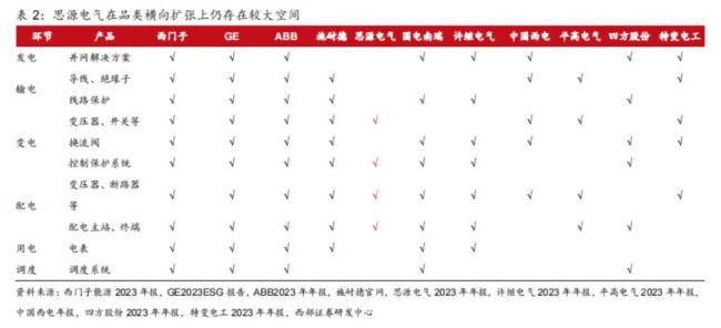 对比国内外的电气设备同行,思源电气的产品覆盖率只能放在最差的那一档。