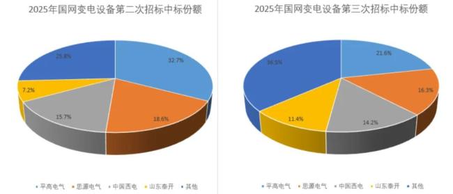 而据风云君自己统计,2025年的第2、第3次招标中,思源电气的组合电器分标中标额分别为6.56亿、8.04亿,对应份额18.6%、16.3%,已经超越了中国西电、山东泰开,成为仅次于平高电气的存在,可以说渐入佳境。