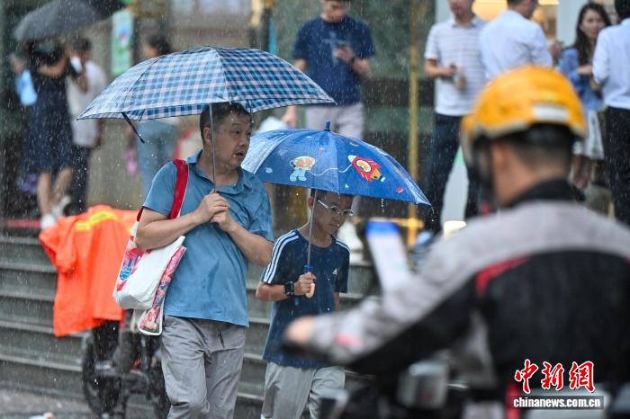 图为市民雨中出行。中新社记者 陈骥旻 摄