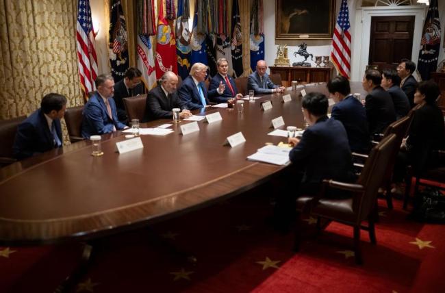 7月30日,特朗普在白宫内阁会议室会见了韩国副总理兼企划财政部长官具润哲、产业通商资源部长官金正官,以及通商交涉本部长吕翰九等韩国政府谈判代表。韩方代表原本高度紧张,担心特朗普会提出未经事先商定的要求,但特朗普却首先抛出了一个出人意料的问题:“金正恩最近过得好吗?”面对这一问题,韩方代表有些不知所措。
