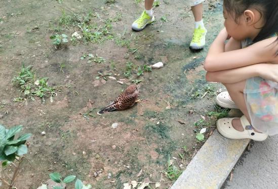 当日上午,社区网格员张咏梅在小区例行巡查时,发现3号楼前的便道上不少居民正围着一只羽毛呈红褐色的鸟儿议论纷纷。张咏梅发现这只鸟儿精神略显萎靡,左侧爪子有明显划伤痕迹。凭借日常学习的知识,结合现场居民用手机搜索的鸟类图片对比,众人初步判断这可能是国家二级保护动物红隼。