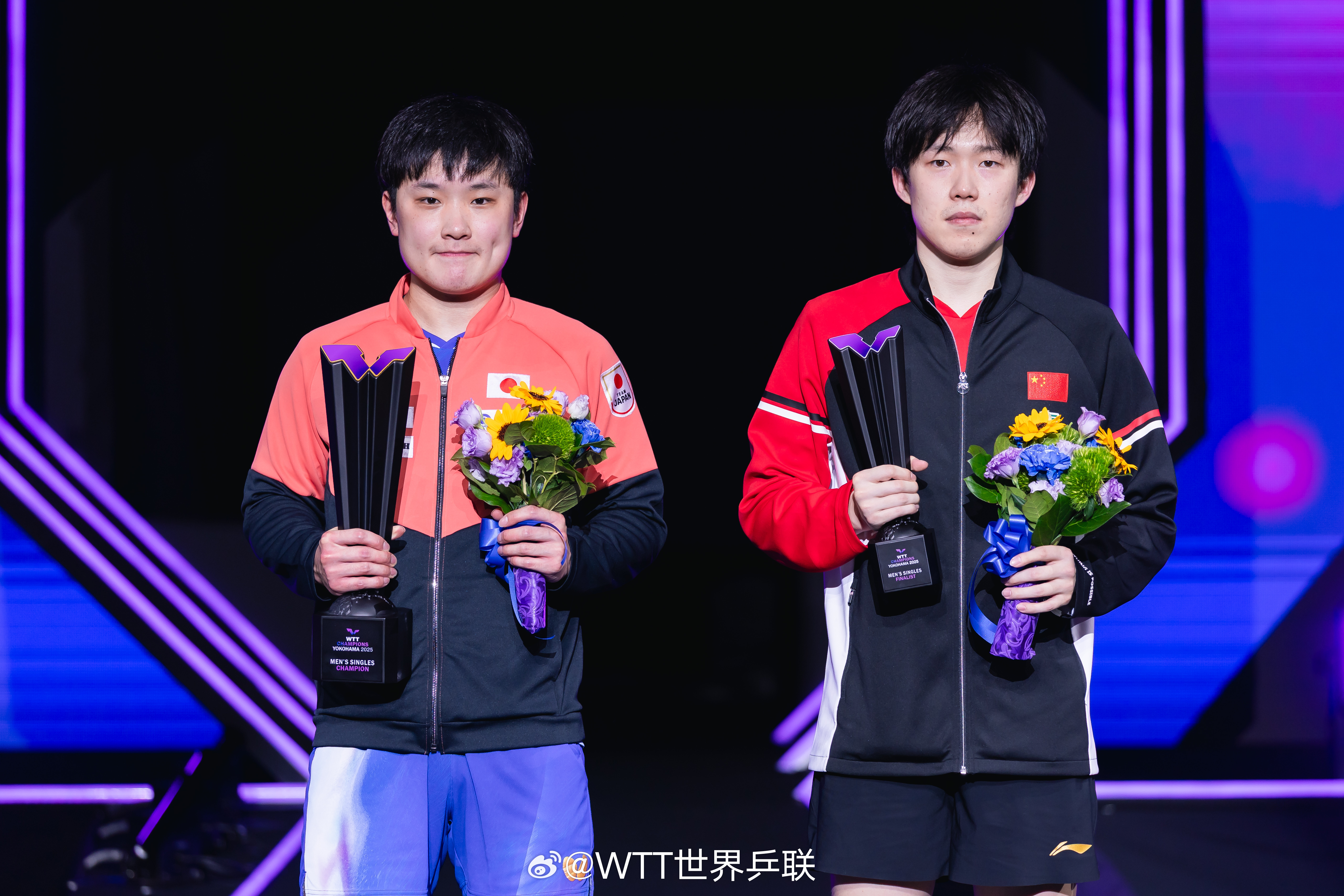图为WTT横滨冠军赛男单颁奖典礼。图片来源:世界乒乓球职业大联盟社交媒体
