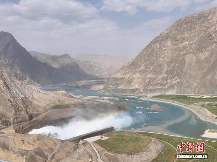 新疆历史上洪涝灾害最严重的河流之一叶尔羌河,因有阿尔塔什水利枢纽工程的高坝拦水蓄洪,如今在高峡之间有序流淌,美丽水面上跃起道道彩虹。