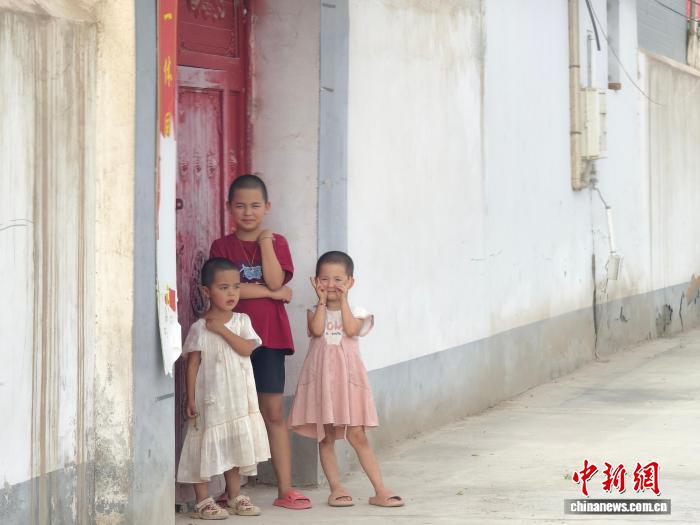 8月7日,新疆莎车县霍什拉甫乡阿尔塔什村,孩子们在村内玩耍,笑迎来客。中新社记者 李梦 摄
