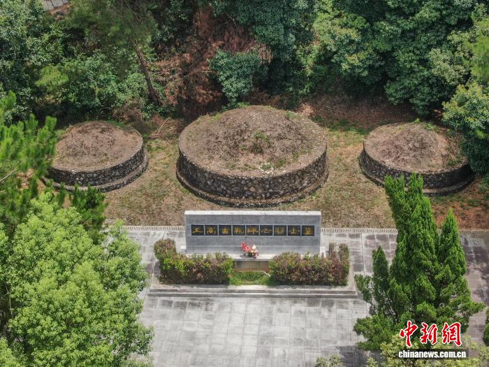 图为在江西上高抗日阵亡将士陵园,三座衣冠冢静静安卧,这里合葬着9000多名牺牲将士。刘力鑫 摄