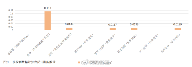 随着近几年消费者越来越关注自身健康,反式脂肪酸被越来越多的消费者熟知。而在此次检测中,喜茶(烤黑糖波波牛乳茶)、奈雪(金色山脉珍珠奶茶)、茉莉奶白(栀子奶白)、霸王茶姬(伯牙绝弦)、爷爷不泡茶(空山栀子)被检出反式脂肪酸。