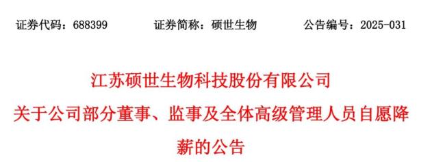 8月27日晚上,江苏硕世生物科技股份有限公司(以下简称“硕世生物”)发布公告称,近日收到部分董事、监事及全体高级管理人员主动出具的《关于自愿降薪的函》。