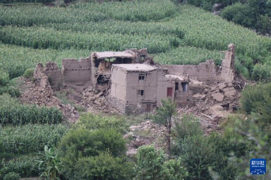 这是9月1日在阿富汗东部库纳尔省努尔加尔拍摄的在地震中损毁的房屋。新华社发(卡扎菲摄)