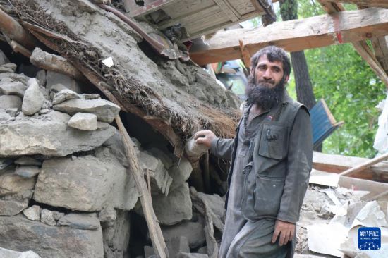 9月1日,在阿富汗东部库纳尔省努尔加尔,一名男子站在一处损毁的房屋旁。新华社发(卡扎菲摄)