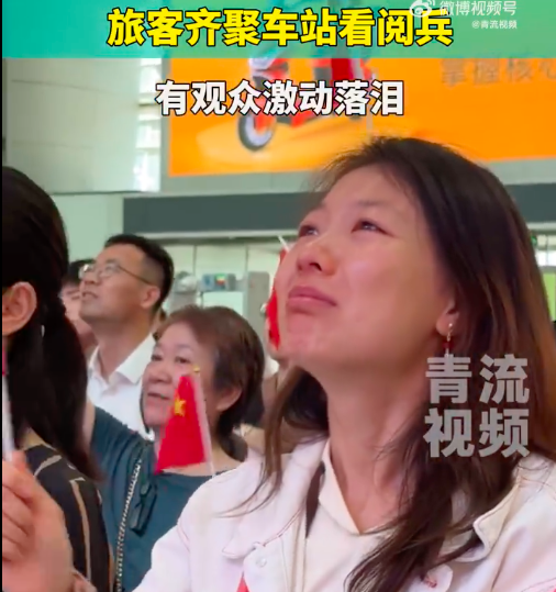 9月3日,纪念中国人民抗日战争暨世界反法西斯战争胜利80周年大会在天安门广场举行,北京南站通过大屏转播现场盛况。上午9时许,北青报记者在站内看到,大量旅客在赶火车的间隙,驻足在大屏幕前收看阅兵盛况。大家高唱国歌、挥舞国旗,有群众激动落泪。