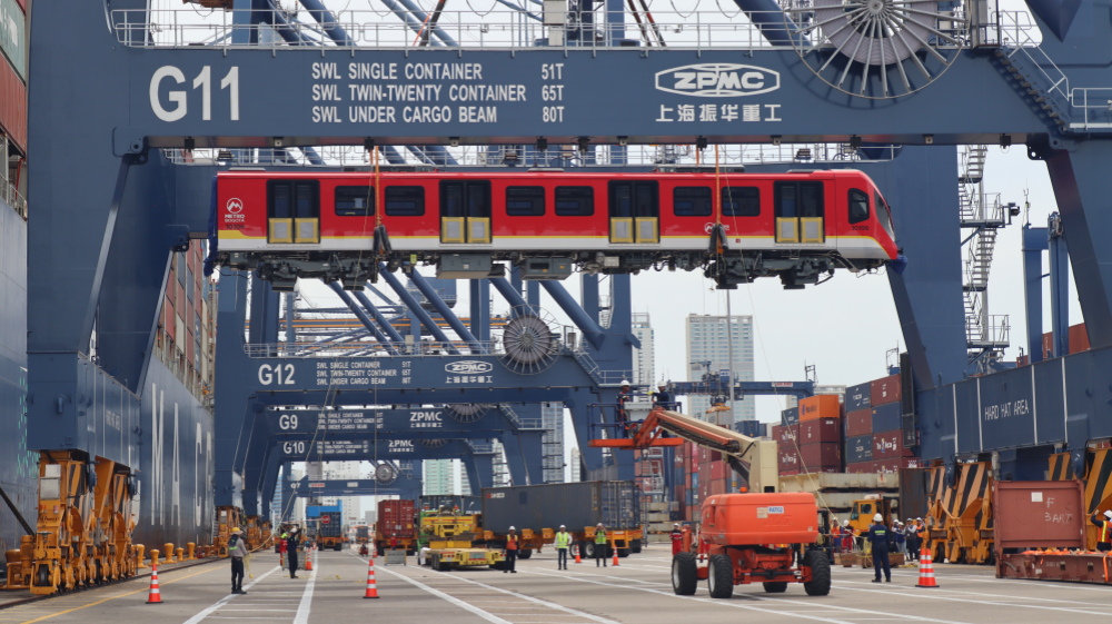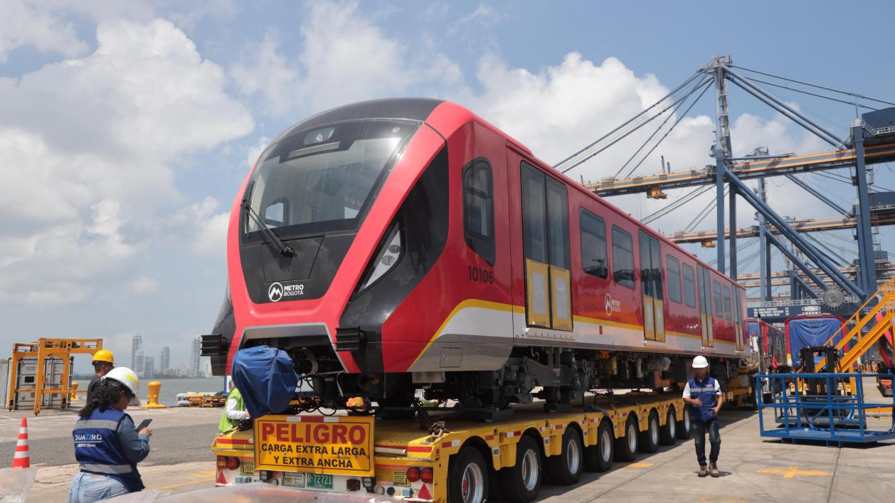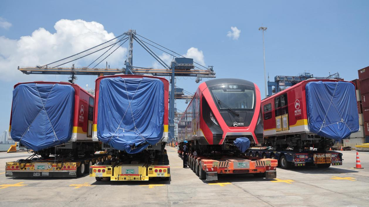 当地时间9月2日,由中国港湾工程有限责任公司承建的波哥大地铁一号线项目首列6辆编组车辆抵达哥伦比亚卡塔赫纳港。中国港湾工程有限责任公司供图