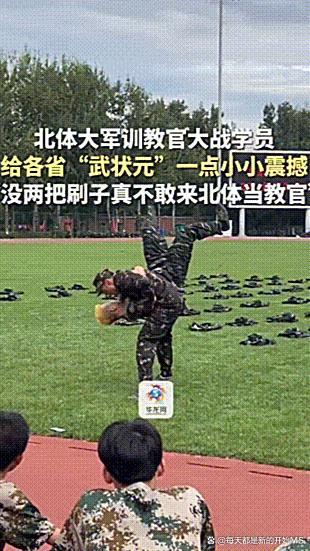 北体军训的出圈并非偶然。从2023年的应急棍、擒敌拳、战术表演,到2024年的花式俯卧撑和无敌风火轮,再到2025年的集体炫技,北体学子将军训场变成了展示体育精神的舞台。视频中,一位扎双马尾的女生打完一套刚劲有力的南拳后,转身又用甜美笑容比心,反差萌引得全场欢呼;另一位男生单手撑地完成人体旗帜,肌肉线条在阳光下清晰可见。网友锐评:“别人军训是走正步,北体军训是开武林大会!”