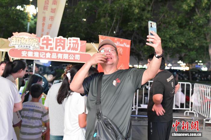 图为民众现场免费领取淮南牛肉汤。中新社记者 储玮玮 摄
