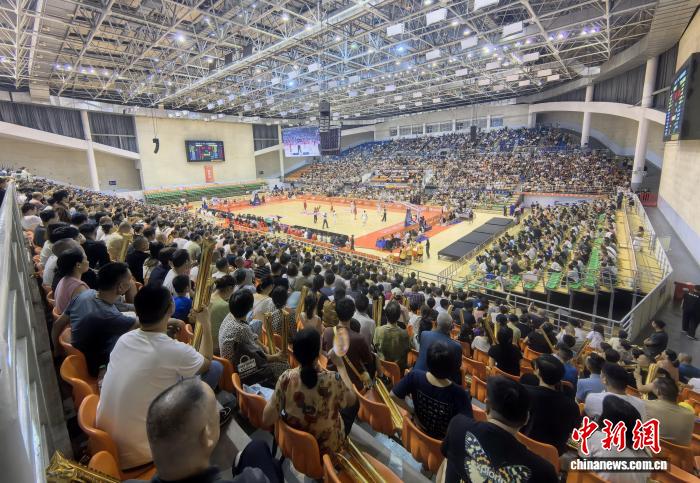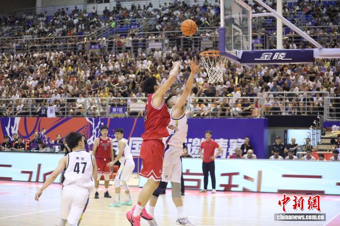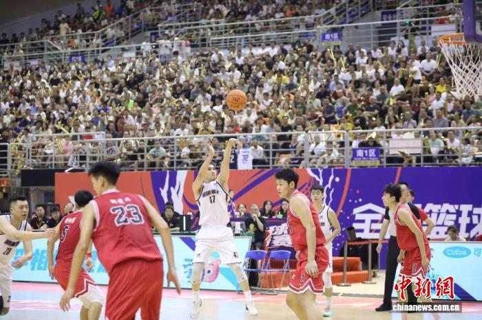 图为球员柳锐代表湘钢集团队剪下篮网。 周阳 摄