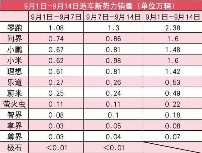 新势力9月第2周销量榜:小米反超问界排第二,理想追平小鹏