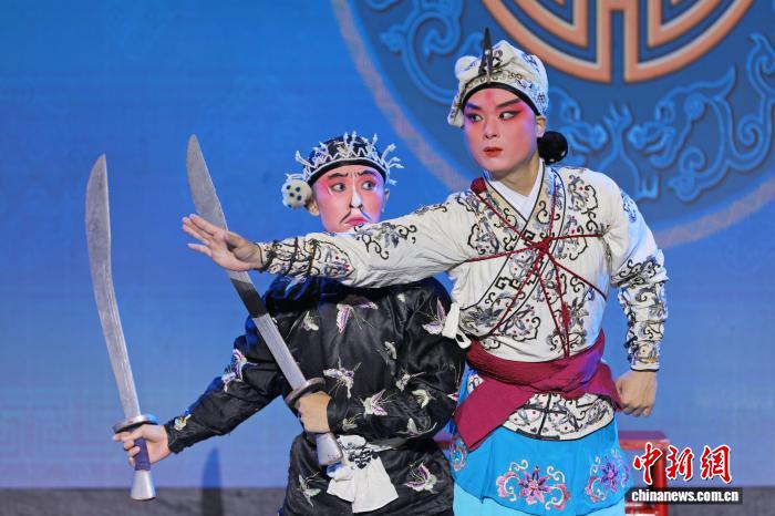 9月23日晚,浙江婺剧团雅加达专场上演。图为折子戏《三岔口》。中新社记者 李志全 摄