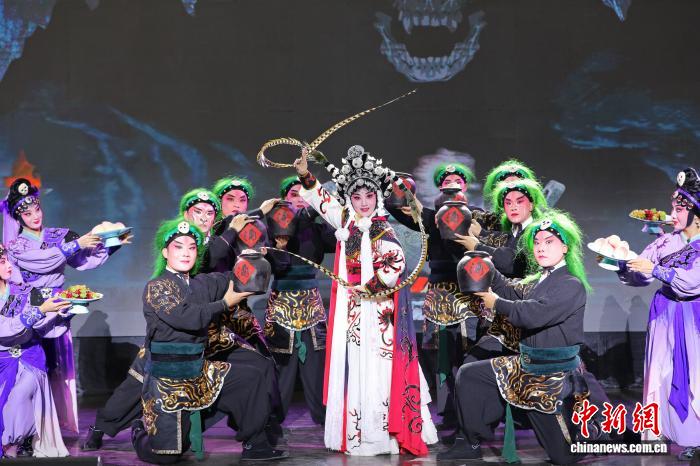 9月23日晚,浙江婺剧团雅加达专场上演。图为经典大戏《三打白骨精》。中新社记者 李志全 摄