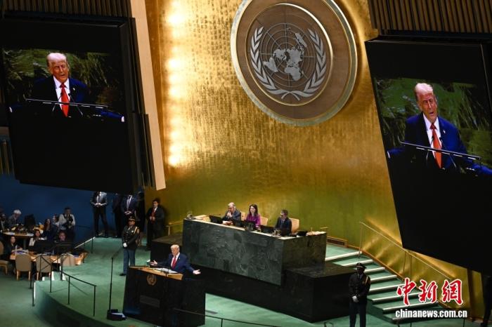当地时间9月23日,纽约联合国总部,第80届联合国大会一般性辩论开幕。图为美国总统特朗普发言。中新社记者 陈孟统 摄