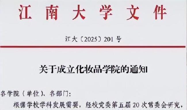 江南大学回应成立化妆品学院 聚焦日化产品研发。近日,有消息称江南大学成立了化妆品学院,引发广泛关注。9月28日,江南大学党委宣传部和化学与材料工程学院确认了这一消息。