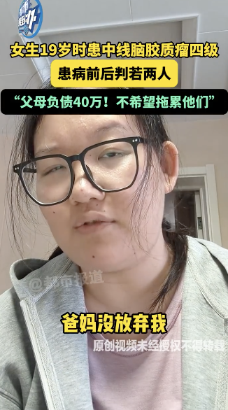 女生19岁时患中线脑胶质瘤四级。10月13日(发布)河南。周女士19岁时刚上大一,读的是护理专业,人生却因一场疾病彻底改变——她被确诊患上弥漫性中线脑胶质瘤(四级)。2021年8月,她开始持续咳嗽、头痛,检查后得知脑中有肿瘤,但当时医生说“不会长大”。她松了一口气,重回校园。没想到,几个月后身体不适加重,2022年复诊时发现肿瘤变大了,医生甚至劝她放弃治疗。妈妈哭着说:“我们不放弃!”在家人的支持下,她成功手术,并坚持完成了漫长的化疗与康复。本以为苦尽甘来,2024年肿瘤再次复发。这次手术效果有限,只能更换治疗方案,继续和病魔抗争。但周女士说:“爸妈都没有放弃我,我就更要撑下去。哪怕吃再多的药,做再多的治疗。”