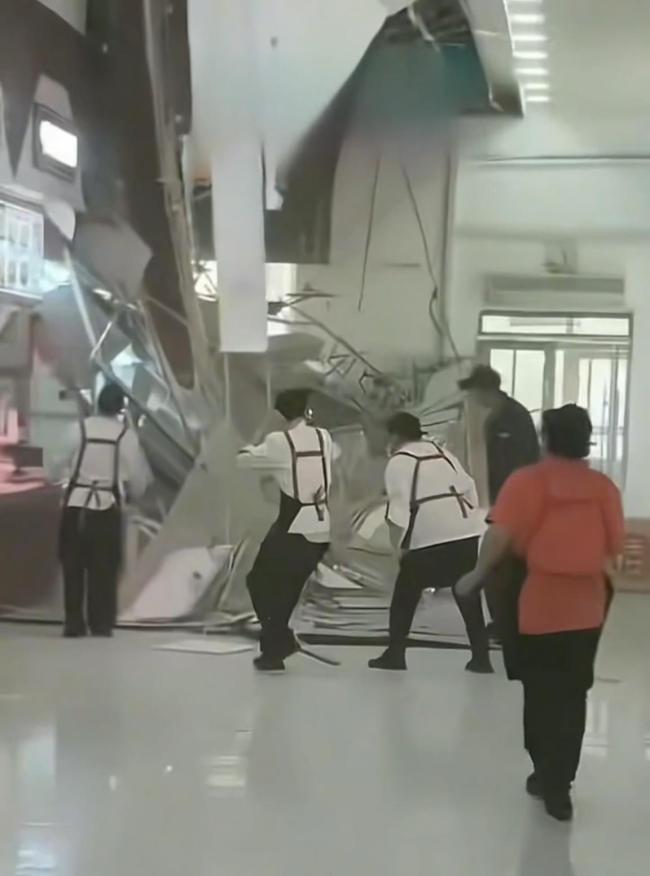 高校工作人员回应食堂吊顶垮塌 未造成人员受伤。