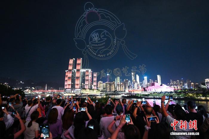 图为无人机表演“第十四届中国艺术节主视觉logo”。中新社记者 何蓬磊 摄