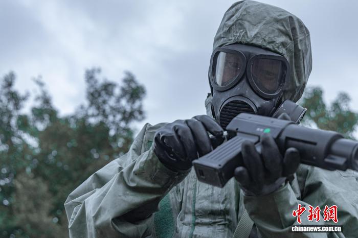 图为防化分队官兵正在对“染毒”地带进行毒剂侦检。何家龙 摄