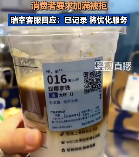 10月30日,瑞幸官方客服人员回应称,经向门店了解,去冰后椰子水的确会略少一些,大致在最高刻度线附近。瑞幸饮品杯身设有刻度线,正常杯量为最高刻度线以上;顾客若选择“去冰”,饮品量可能略少于加冰版本,但并非消费者说的“去冰就只能给半杯”。对于“能否应要求加满”的问题,客服表示,顾客可通过订单备注或现场沟通提出加冰、加水等合理需求,门店将尽量满足。针对此次门店拒绝为顾客加满的情况,客服已记录相关反馈,将转交责任部门核查,并对门店服务进行优化,致力提升消费者体验。