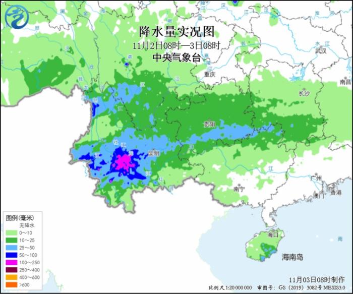 降水方面,昨日,西藏东部和南部、川西高原等地出现小雪或雨夹雪,局地中到大雪;四川南部、云南大部、贵州南部、海南岛东南部等地出现大雨,云南中部和西部部分地区出现暴雨,楚雄、玉溪和普洱局地大暴雨。