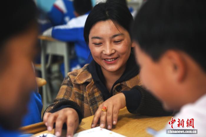 图为甘肃甘南州民政社会福利综合服务中心儿童福利院内,工作人员指导孩子们的功课。(资料图) 李亚龙 摄