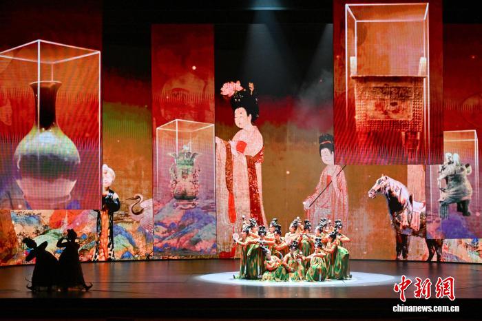 11月4日晚,第十四届中国艺术节闭幕式在重庆举行。作为中国规格最高、最具影响力的综合性文化艺术活动,本届艺术节以“艺动巴山蜀水 共绘时代新篇”为主题,由中国文化和旅游部、重庆市人民政府、四川省人民政府共同主办。本届中国艺术节汇聚数百家全国专业文艺院团和群众文艺团队,集中展演舞台艺术精品100余台、群众文艺作品170余个,展出美术、书法篆刻、摄影作品1100余件,全面展现新时代艺术创作的繁荣面貌。图为演员们在第十四届中国艺术节闭幕式中表演舞蹈《唐宫夜宴》。中新社记者 何蓬磊 摄