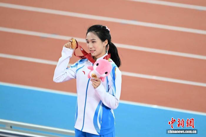 浙江队选手陈妤颉展示金牌。陈楚红 摄