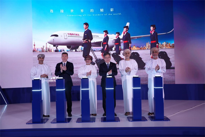 活动现场,中阿嘉宾共同点亮大屏幕,象征航线正式启动。东航相关负责人还介绍了首航航线情况,并播放了北京城市宣传片。伴随着精彩的阿曼传统风笛演奏和中国川剧变脸表演,双方各界共话合作,共畅未来。