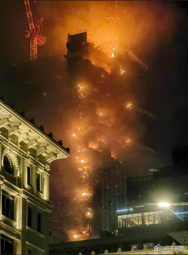 此次火灾是由于多方面的原因引起的。既有施工所用材料不合规等人为疏忽因素,也有天气和建筑结构等客观助推因素。事发时,大埔宏福苑的楼宇正处于维修阶段,外墙搭建了竹制脚手架并包裹着防护网。竹制脚手架像“易燃外衣”,一旦被点燃,火势会沿竹子快速蔓延且无阻隔。现场拍摄的视频显示,在熊熊燃起的烈焰中,竹制脚手架整片散架地坠落,砸向地面并发出震耳欲聋的声响。