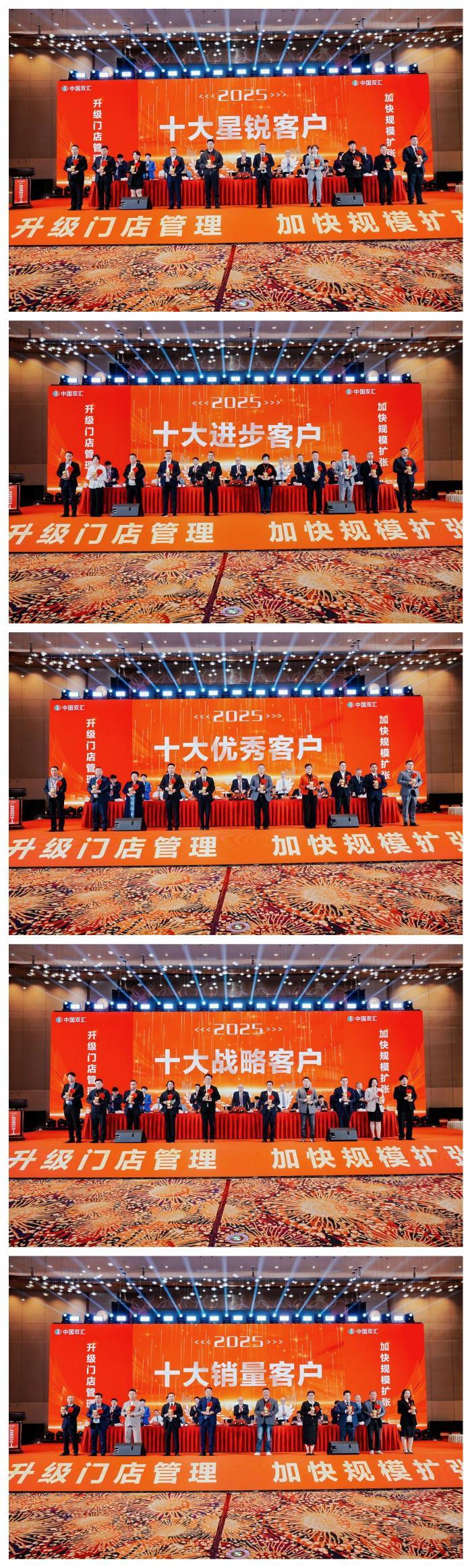 会上,双汇生鲜品事业部对荣获十大星锐客户、十大进步客户、十大优秀客户、十大战略客户、十大销量客户的经销商进行隆重表彰,万洲国际、双汇发展高管为获奖人员颁奖。