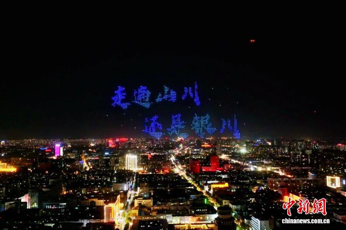 假日期间,无人机表演点亮鼓楼—玉皇阁历史文化街区夜空。(资料图)兴庆区融媒体中心供图