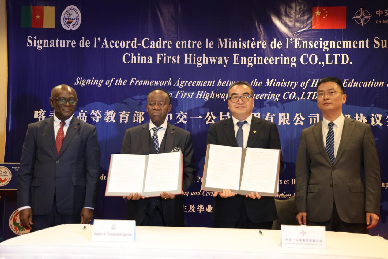 人民网内罗毕1月14日电 (记者黄炜鑫)雅温得消息:当地时间1月13日,中交一公局集团有限公司与喀麦隆高等教育部在喀首都雅温得签订“喀麦隆高等教育部—中交一公局集团职业认证项目”框架协议。