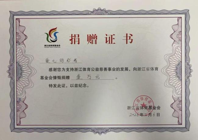 对于奖金的规划,孙先生表示会好好规划,为未来多一份保障。领奖现场,他还向浙江省体育基金会和浙江省青少年发展基金会各捐赠10000元,以实际行动支持公益事业,让这份幸运传递出更多温暖。