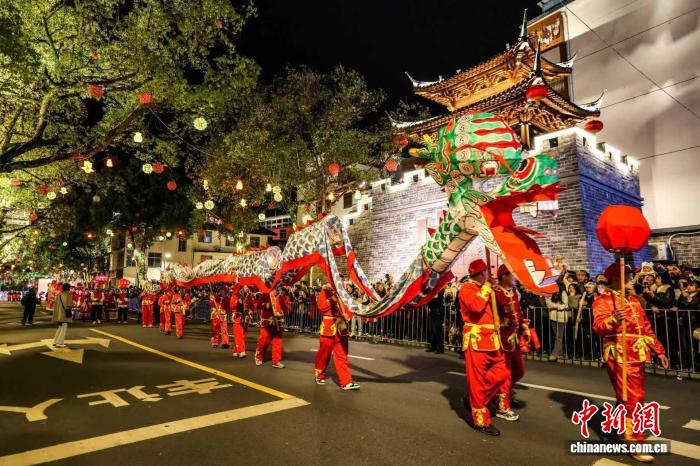 中新网福建宁化3月4日电 (刘博文 黄尉峰)3月3日正月十五之夜,客家祖地福建省宁化县沉浸在一片喜庆祥和的节日氛围中。一场以“福满客家祖地·灯耀锦绣宁化”为主题的元宵民俗巡游展演活动精彩启幕,精选的乡镇特色传统民俗项目集中亮相,将客家文化的厚重底蕴与非遗的独特魅力展现得淋漓尽致,为市民和游客送上了一场充满“福”韵的文化盛宴。