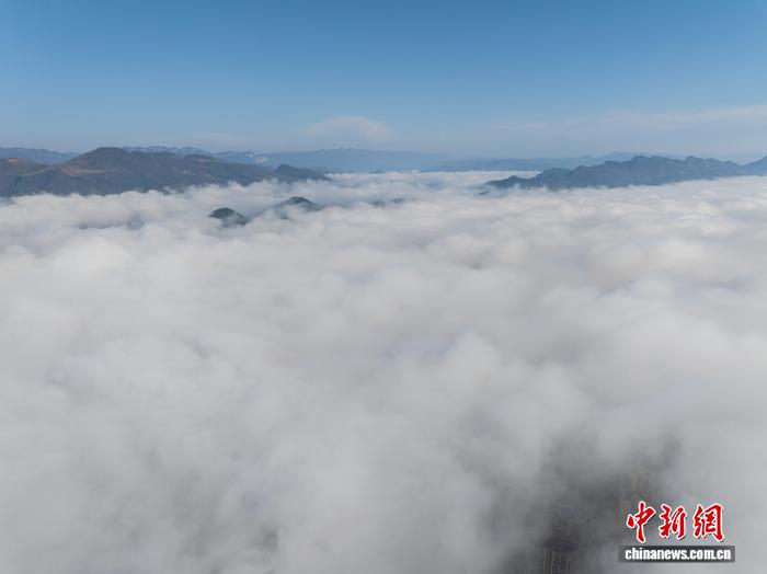 图为航拍务川平流云景观。(无人机照片)唐哲 摄