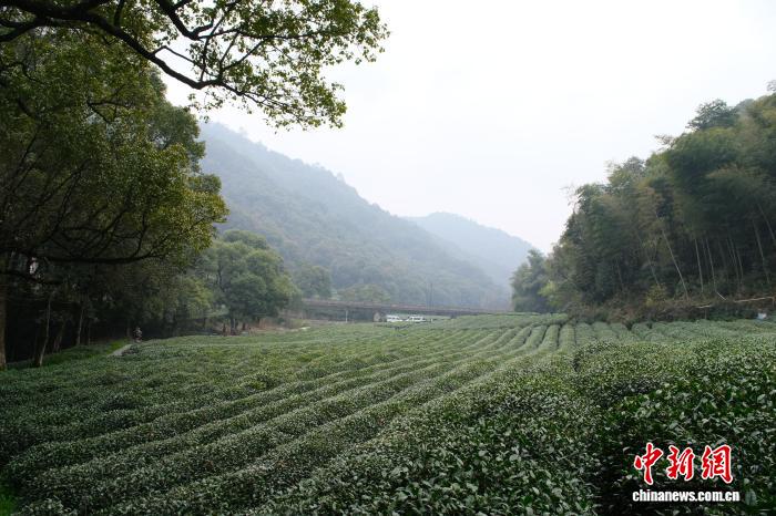 3月19日,梅家坞茶园一景。当日,西湖龙井茶开茶典礼在浙江杭州西湖龙井核心产区梅家坞举行,宣告春茶正式开采。中新社记者 曹丹 摄